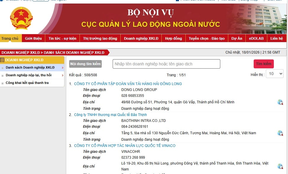 Công ty xuất khẩu lao động đó phải là đơn vị được Bộ lao động, thương binh & Xã hội cấp giấy phép đủ chức năng đưa người đi làm việc ở nước ngoài, nghĩa là phải có đầy đủ hồ sơ pháp lý hoạt động trong lĩnh vực đưa người lao động đi làm việc tại nước ngoài; được Bộ lao động Thương binh và Xã hội cấp phép. Các bạn có thể xem danh sách các công ty xuất khẩu lao động tại website Dolab.gov.vn hoặc click vào đây